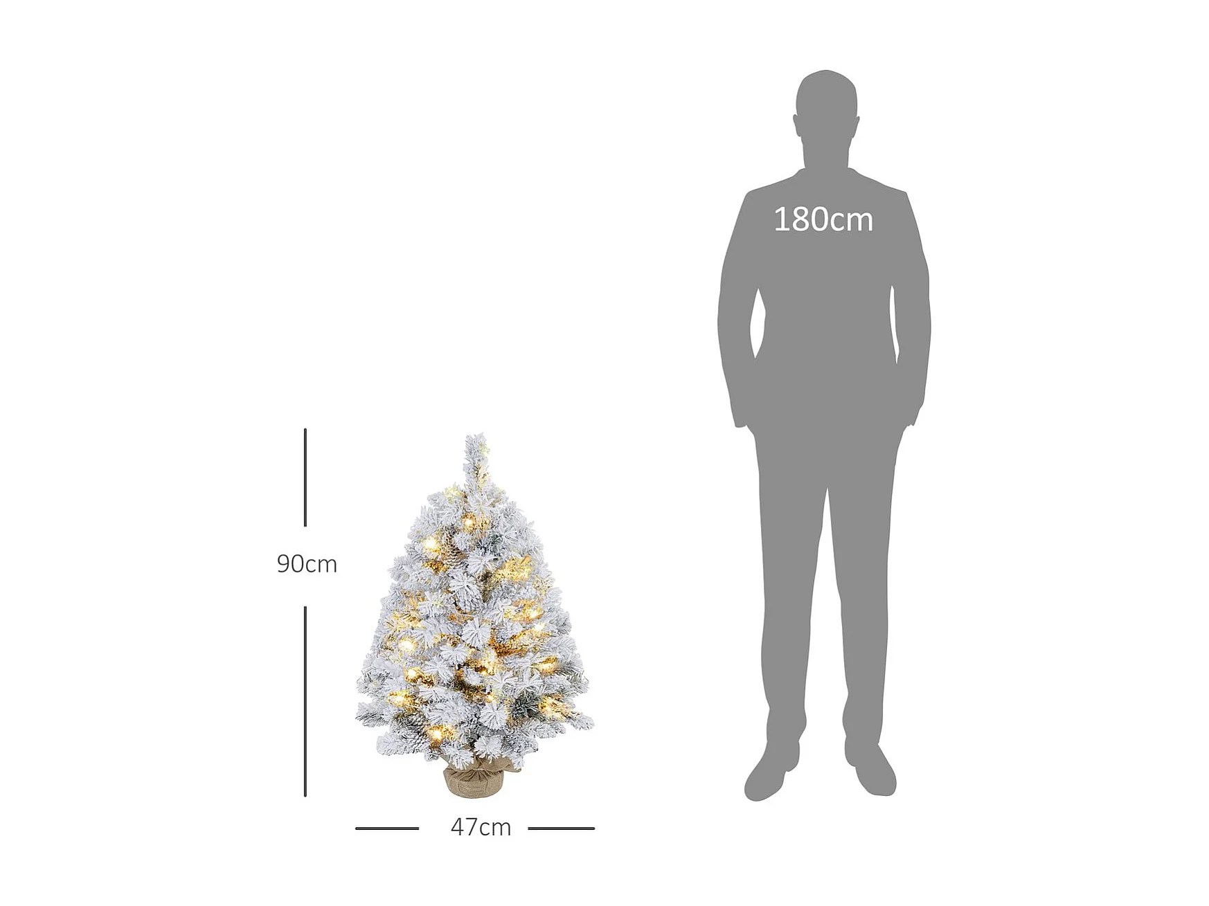 Árbol de Navidad Alsacia Homcom 133 ramas + 50 luces LED blanco Ø47x92 cm