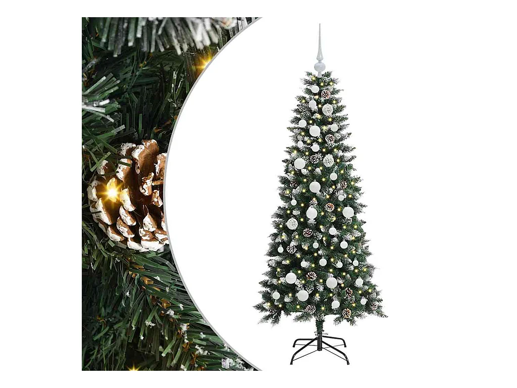 Árbol de Navidad Delgado con 150 LED con soporte Verde y 150 cm