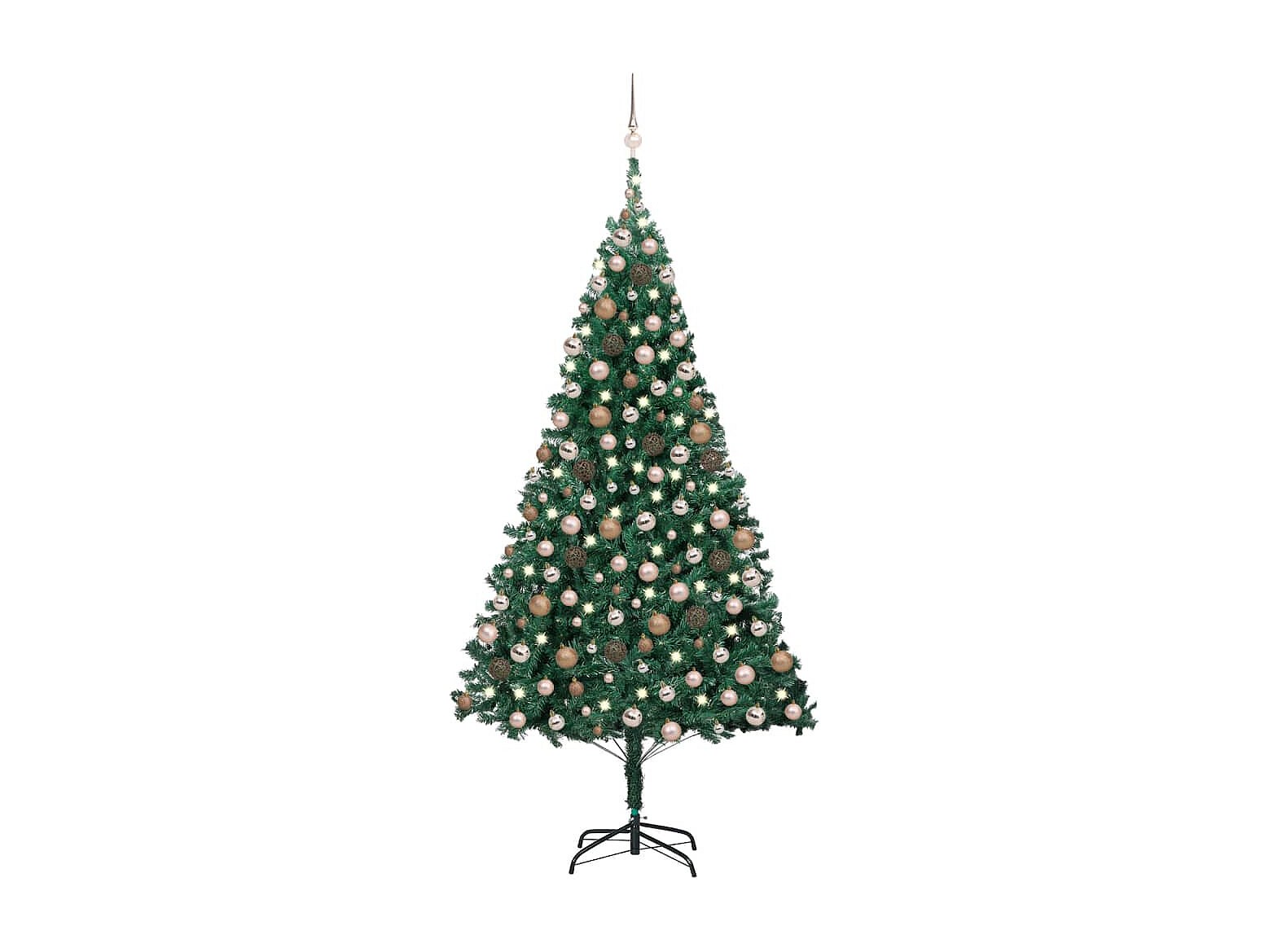 Árbol de Navidad artificial con LEDs, bolas y piñas 210 cm