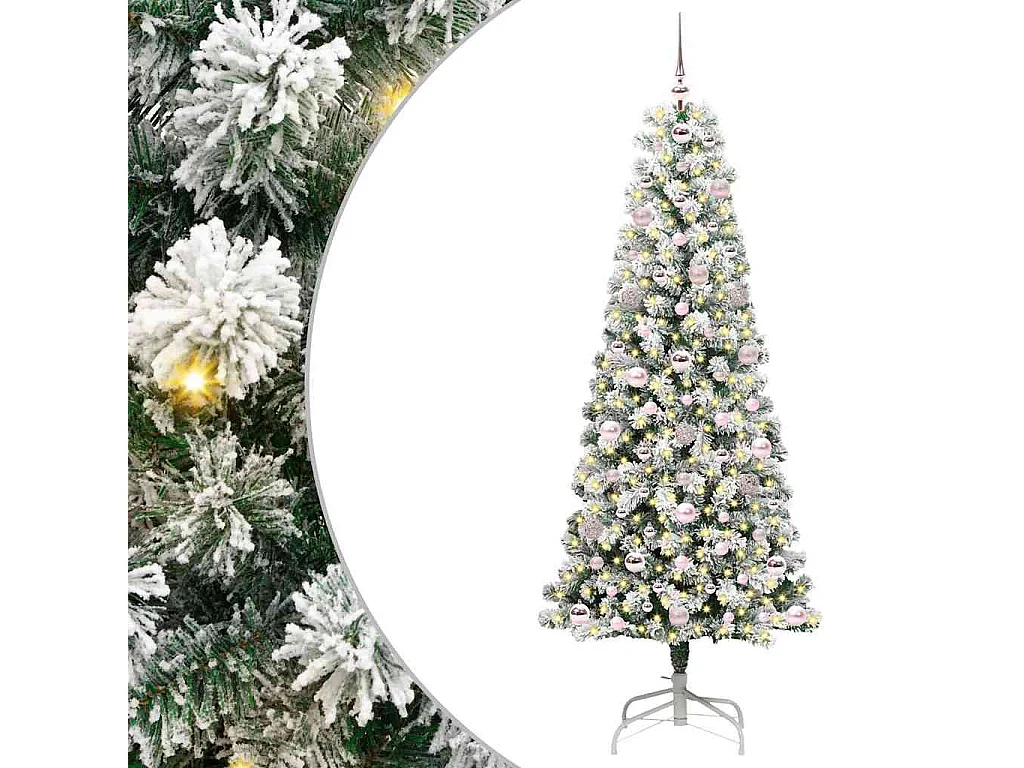 Árbol de Navidad artificial con piñas y nieve blanca 180 cm
