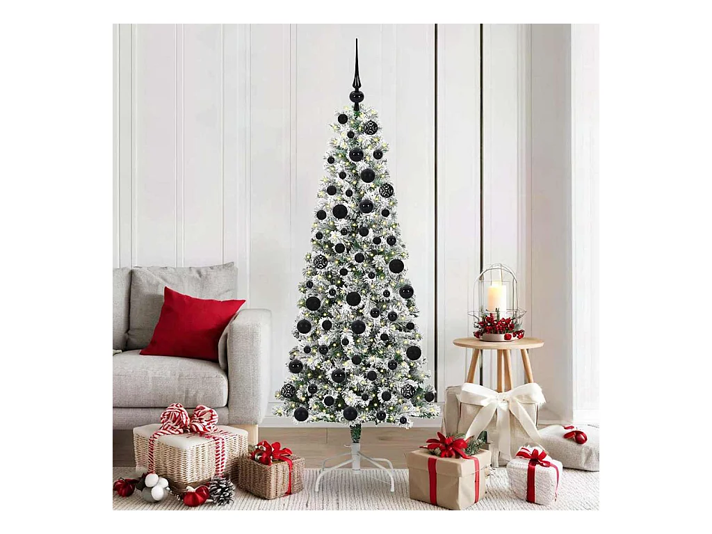 Árbol de Navidad artificial con piñas y nieve blanca 180 cm