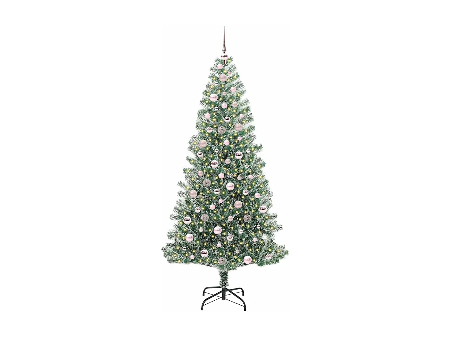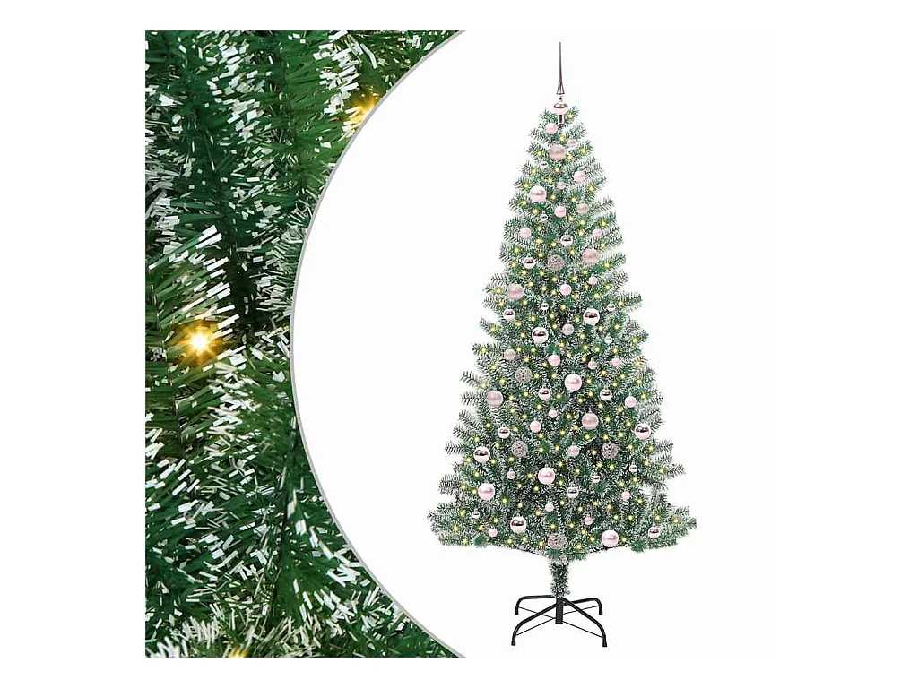 Árbol de Navidad Artificial Nevado con Luz LED Verde y 210 cm