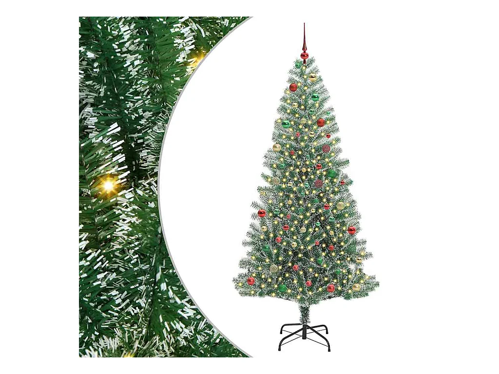 Árbol de Navidad Artificial Nevado con Luz LED Verde y 210 cm