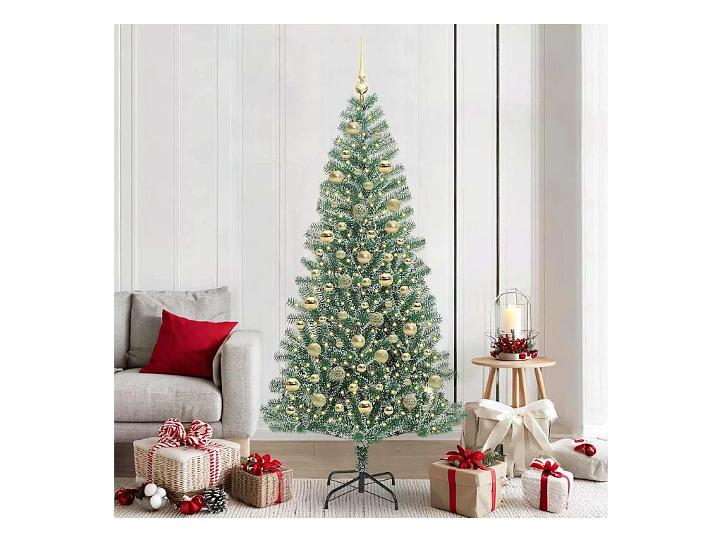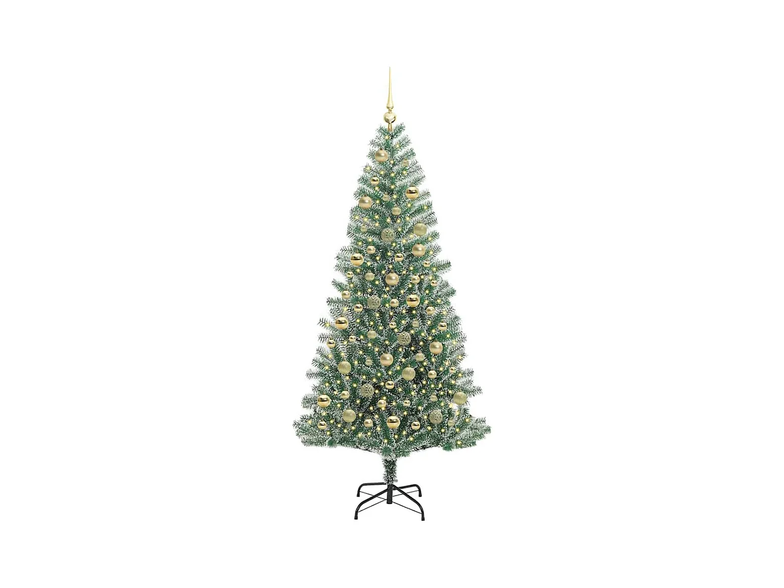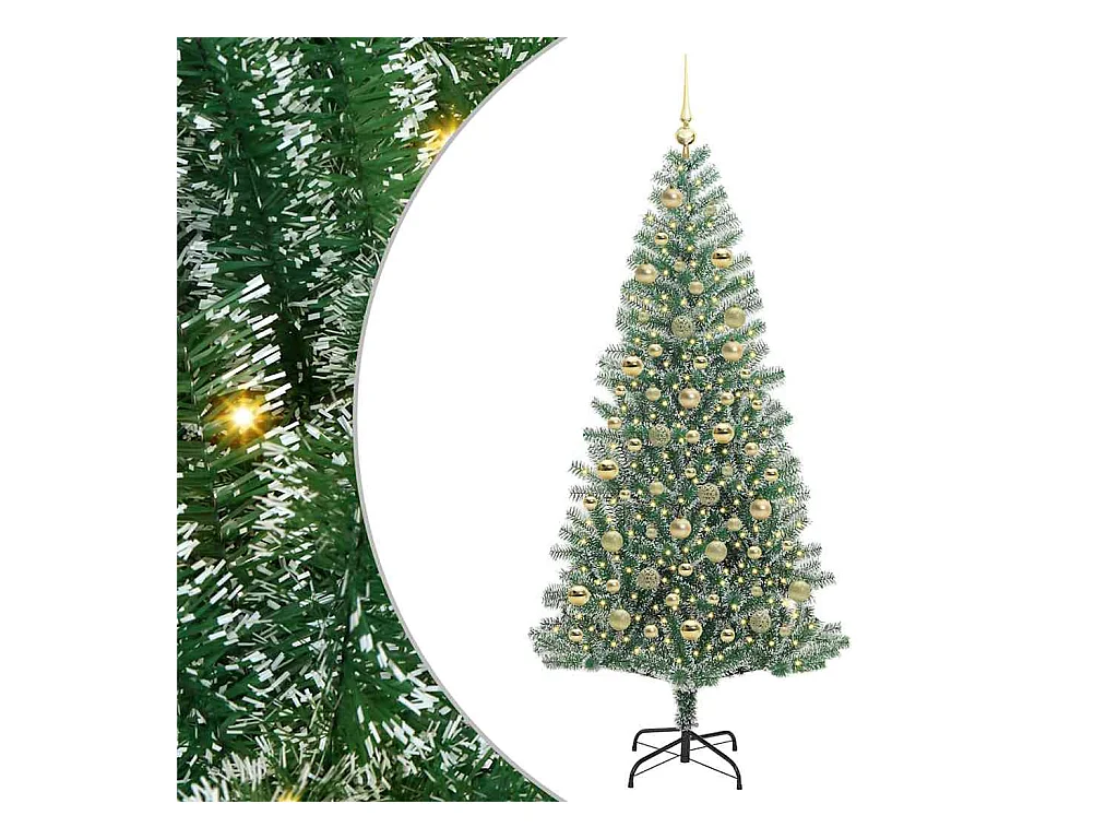 Árbol de Navidad Artificial Nevado con Luz LED Verde y 210 cm