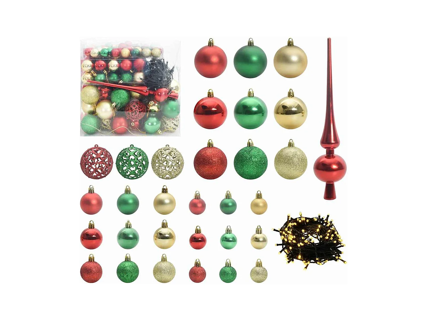 Árbol de Navidad artificial preiluminado con juego de bolas
