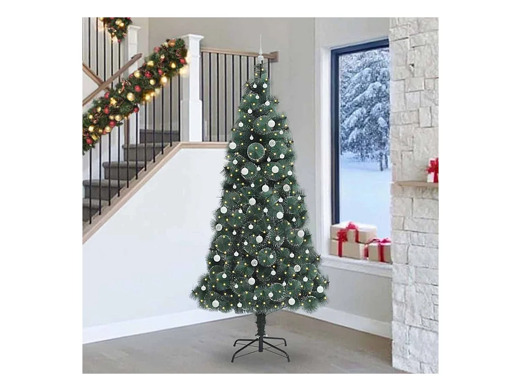 Árbol de Navidad artificial preiluminado con juego de bolas