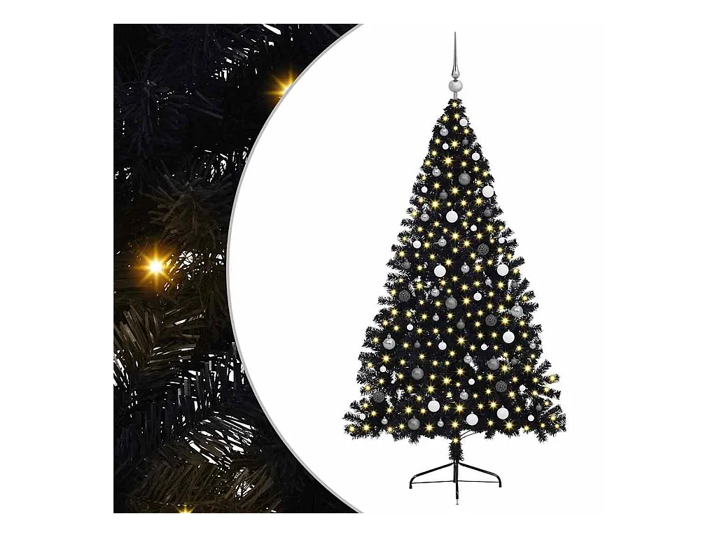 Árbol de Navidad Artificial Preiluminado Negro 210 cm PVC
