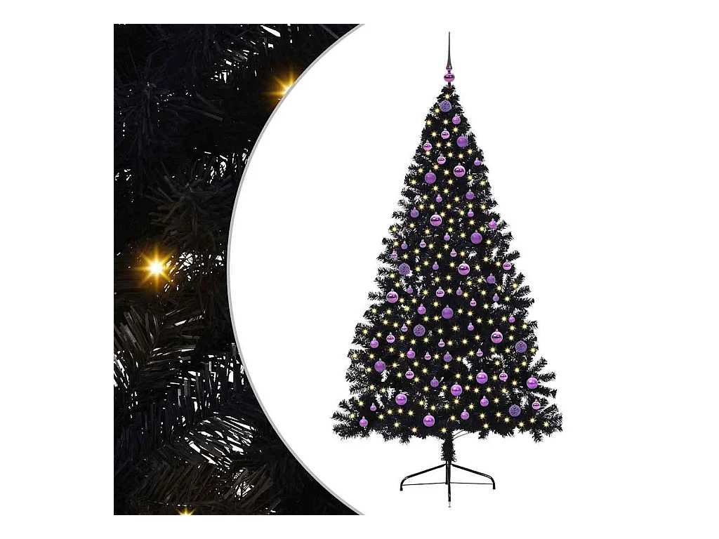 Árbol de Navidad Artificial Preiluminado Negro 210 cm PVC
