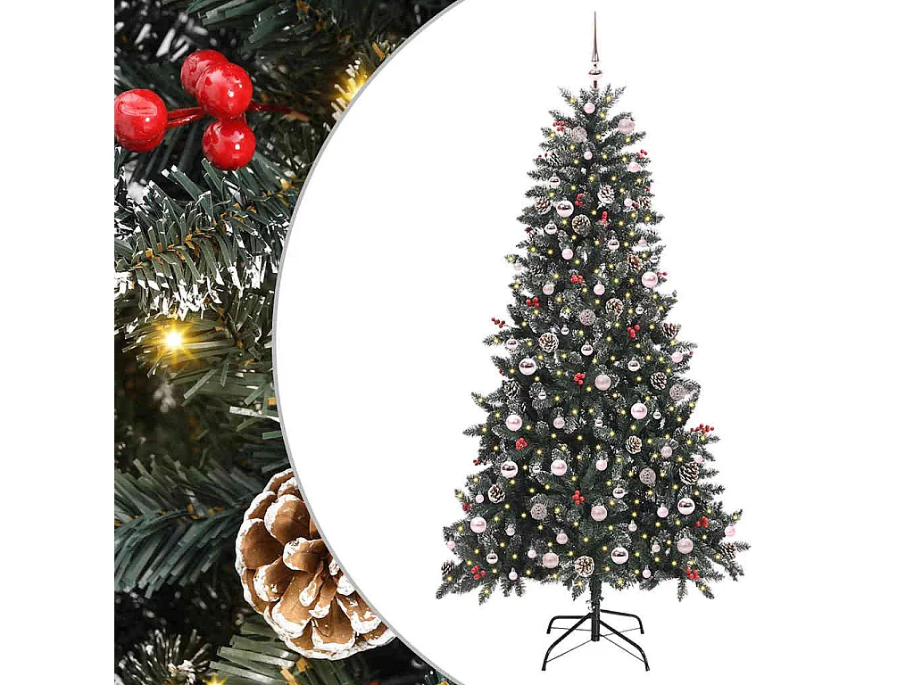 Árbol de Navidad artificial con bisagras 300 LED y bolas 210 cm