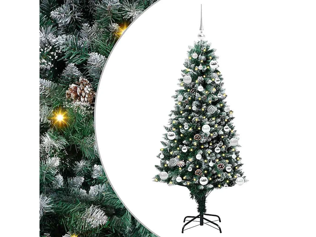 Árbol de Navidad artificial con bisagras y nieve flocada 150 cm
