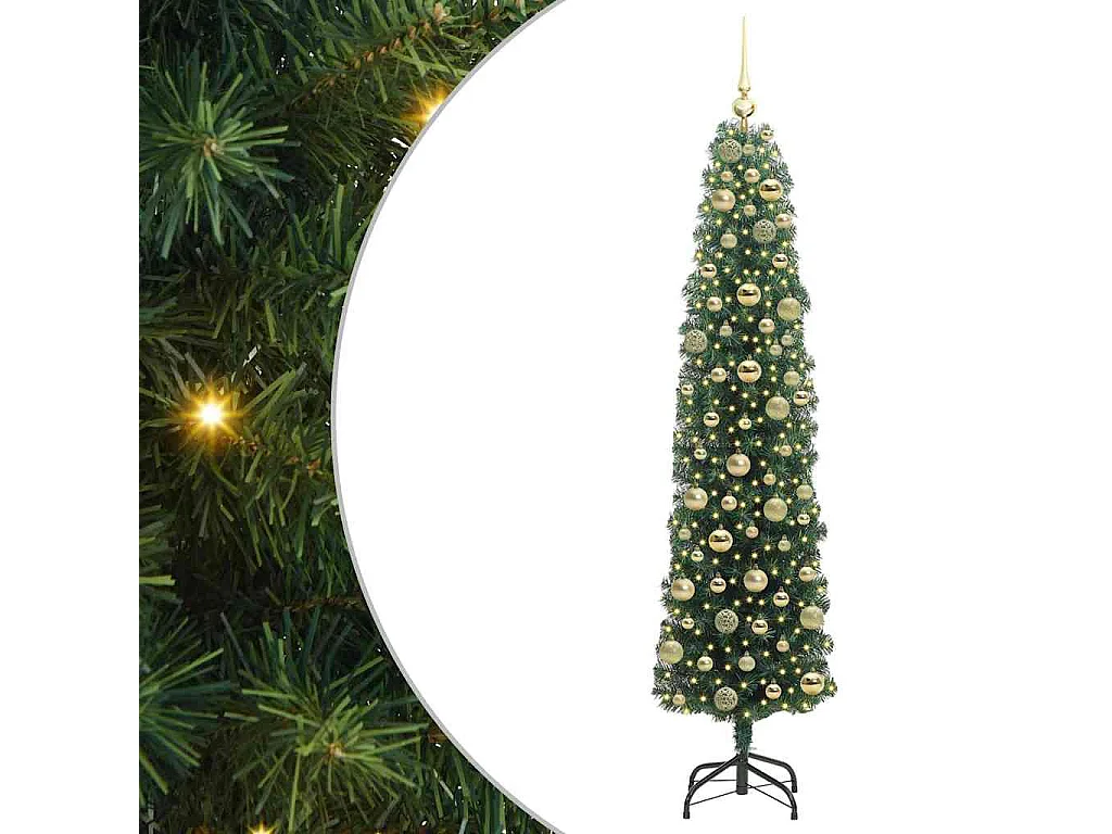 Árbol Navideño Artificial Delgado con 300 LED verde y 180 cm