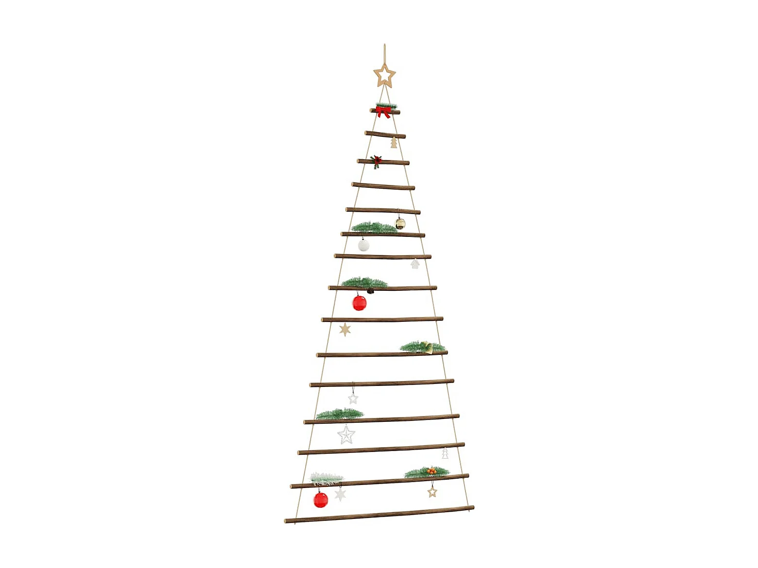Árbol de Navidad colgante con estrella en la punta, 74 x 150 cm, rama natural