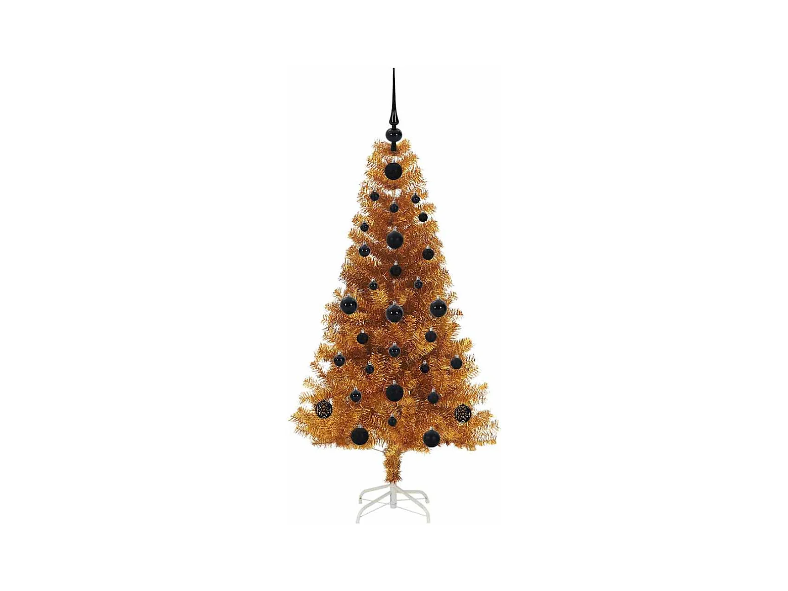 Árbol de Navidad preiluminado con luces y bolas dorado 120 cm