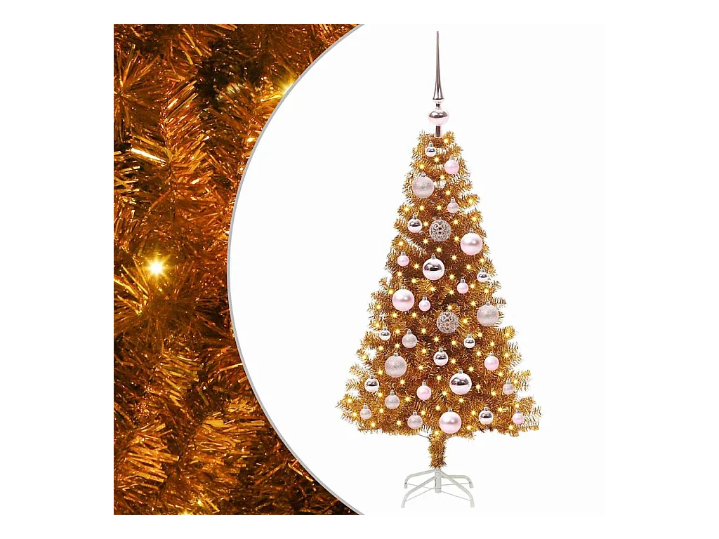 Árbol de Navidad preiluminado con luces y bolas dorado 120 cm