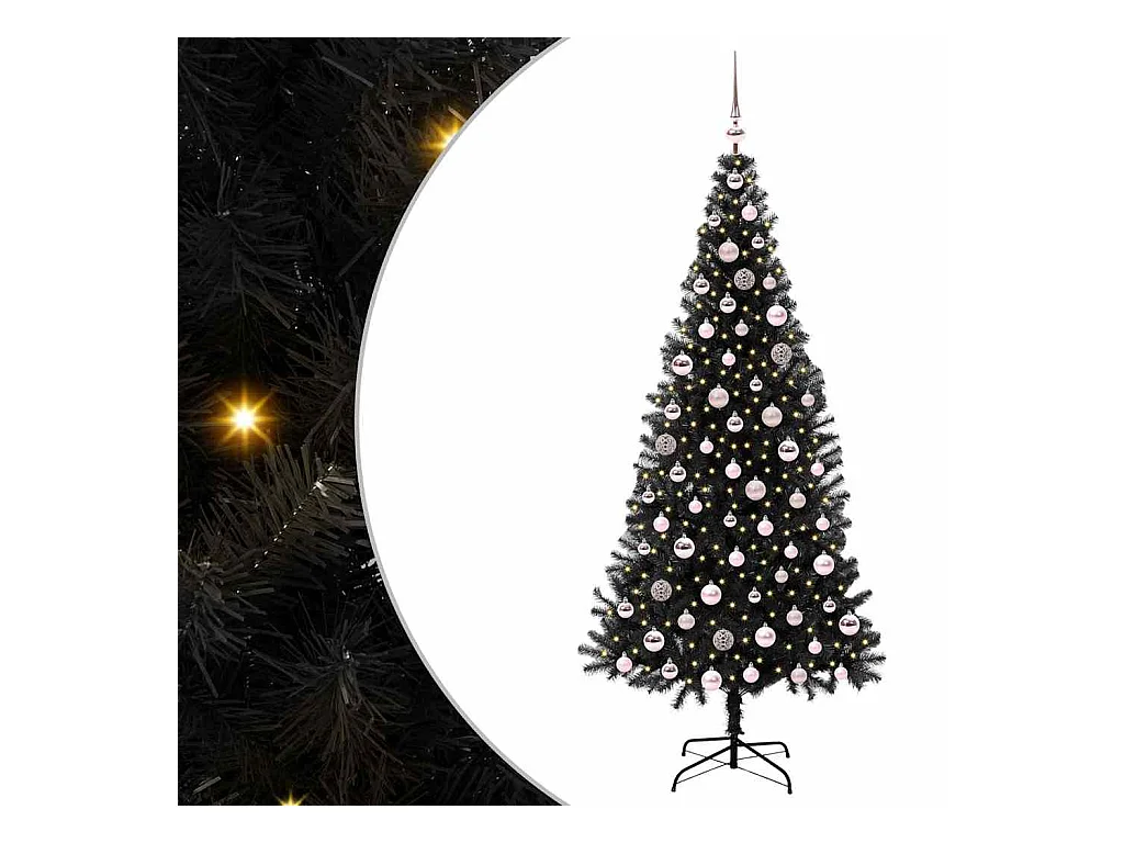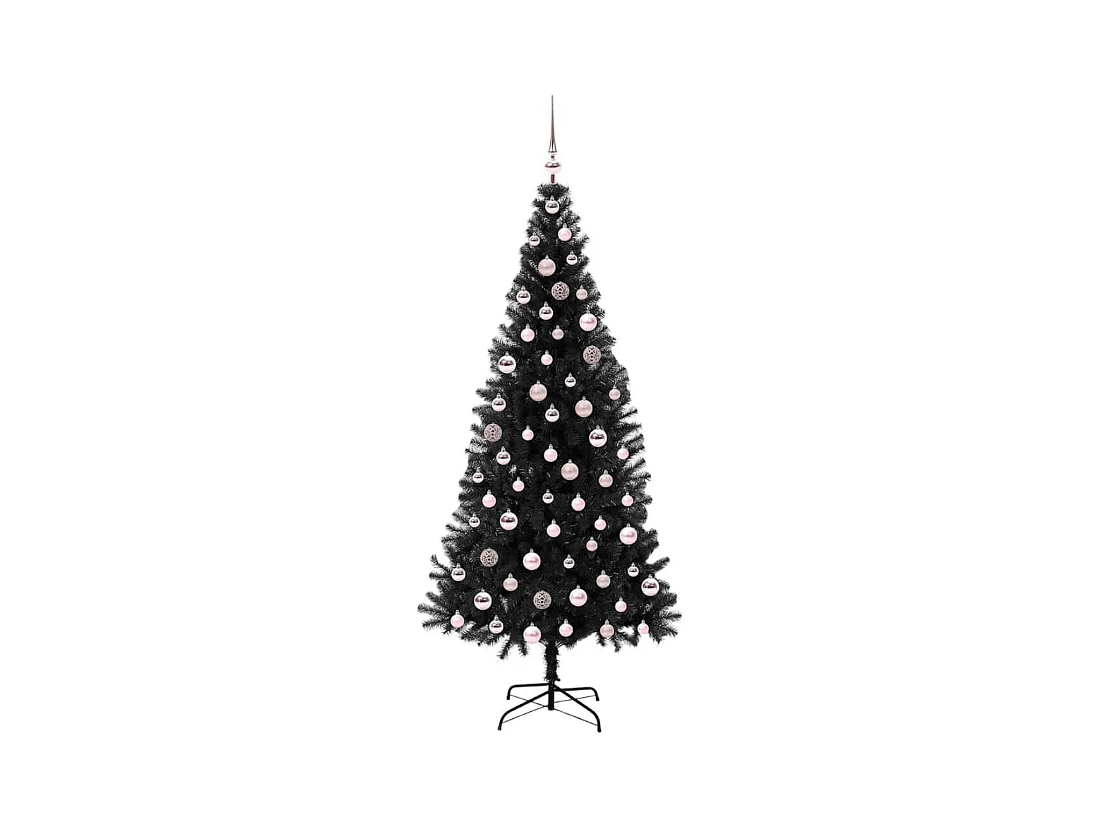 Árbol de Navidad Artificial Preiluminado Negro 210 cm PVC
