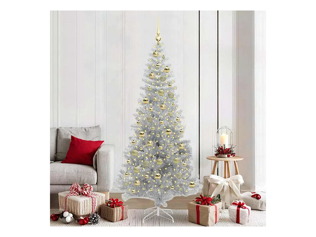 Árbol de Navidad Artificial Preiluminado Plateado 210 cm PET