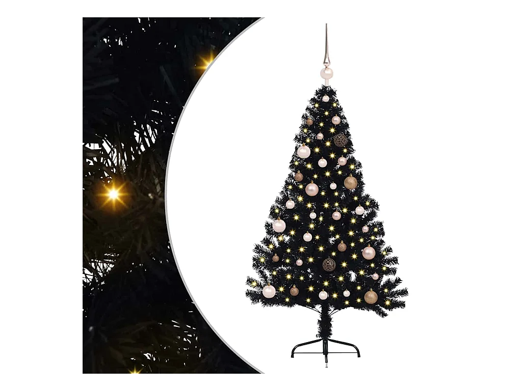 Árbol de Navidad Artificial Preiluminado Negro 150 cm PVC