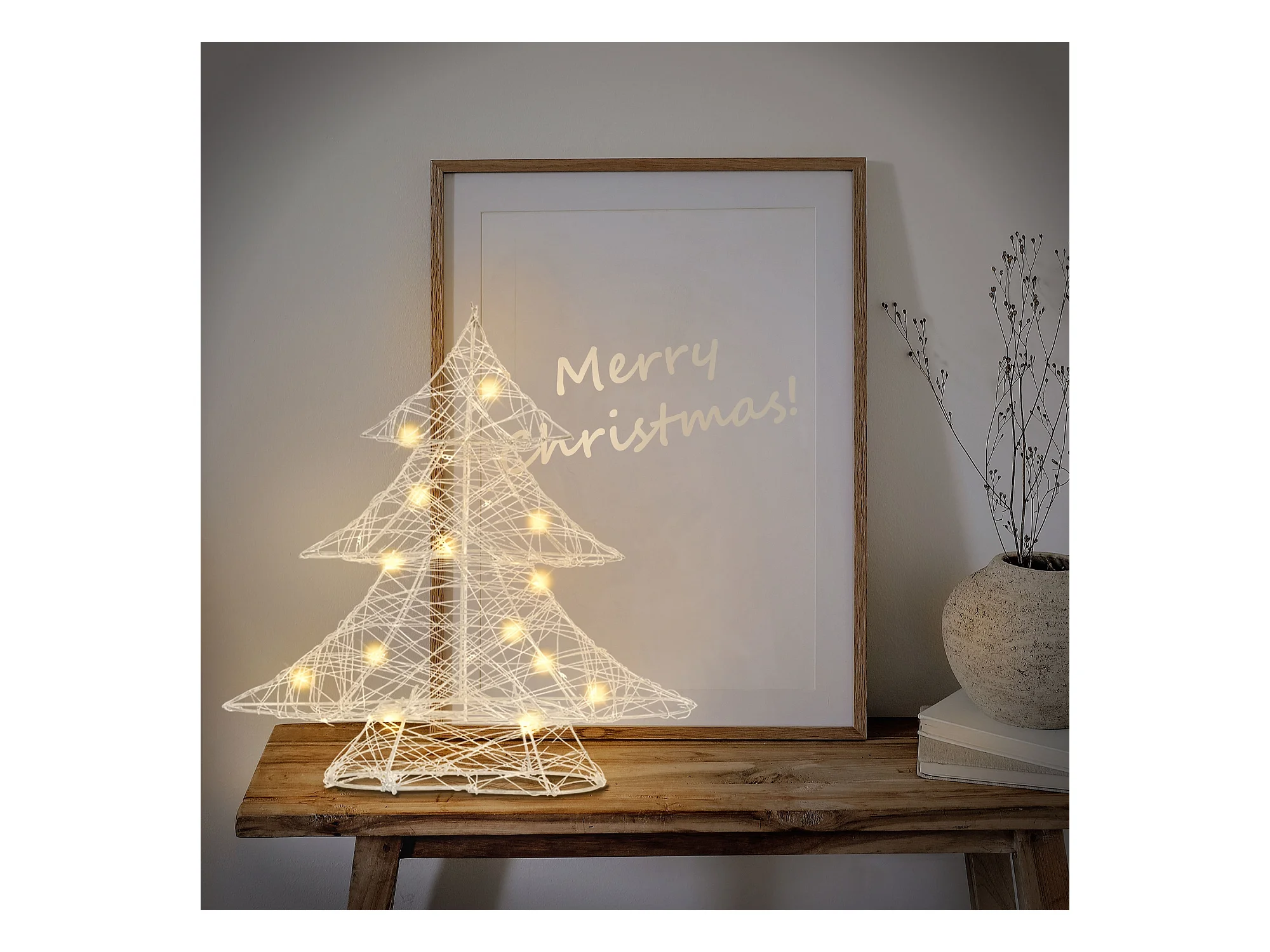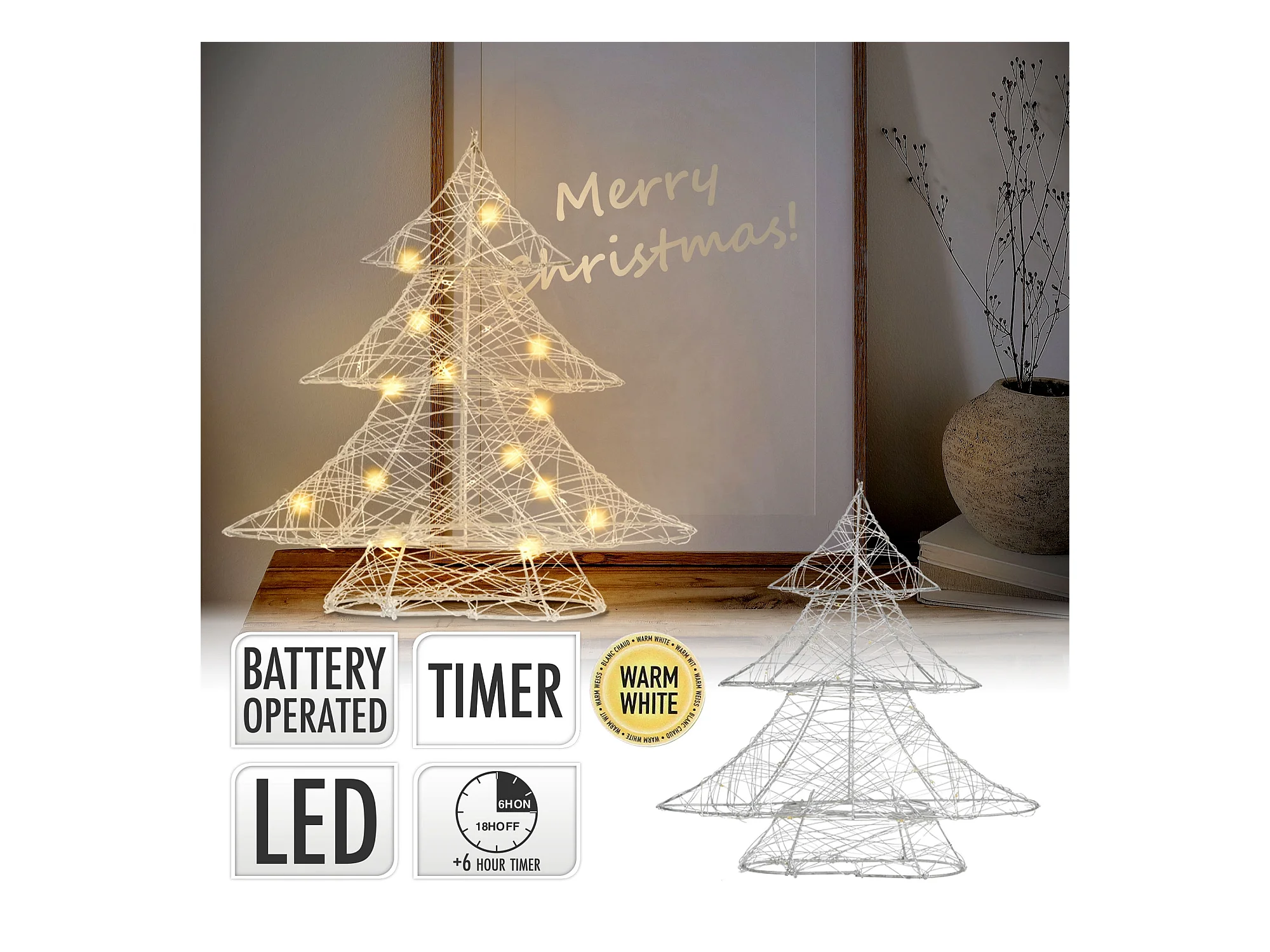 Árbol de navidad decorativo 30 cm con LEDs arbolito plateado ornamental de metal