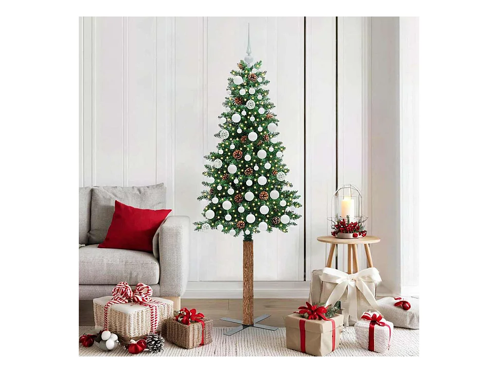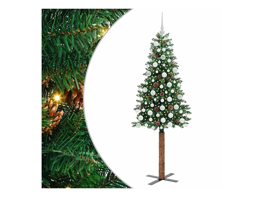 Árbol de Navidad Delgado con 300 LED con soporte Verde y 180 cm