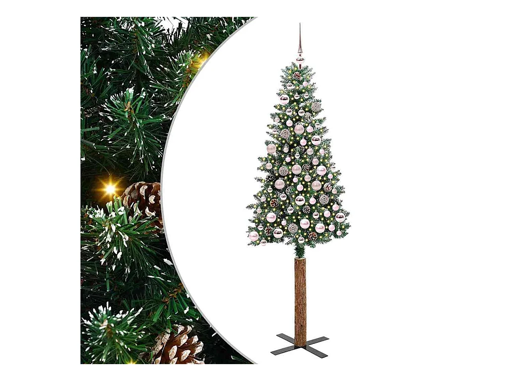 Árbol de Navidad Delgado con 300 LED con soporte Verde y 180 cm