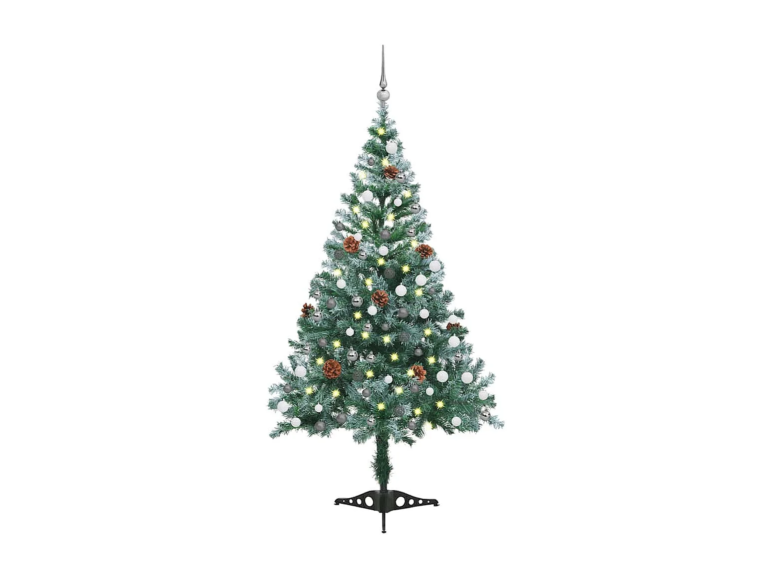 Árbol de Navidad helado con luces LED, bolas y piñas 150 cm