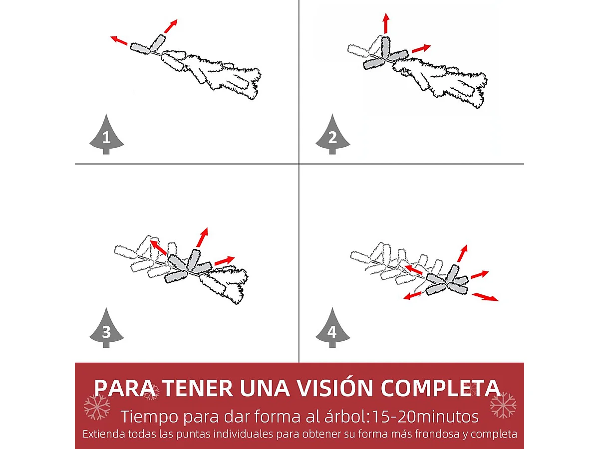 Árbol de Navidad artificial con bisagras y soporte blanco 120cm