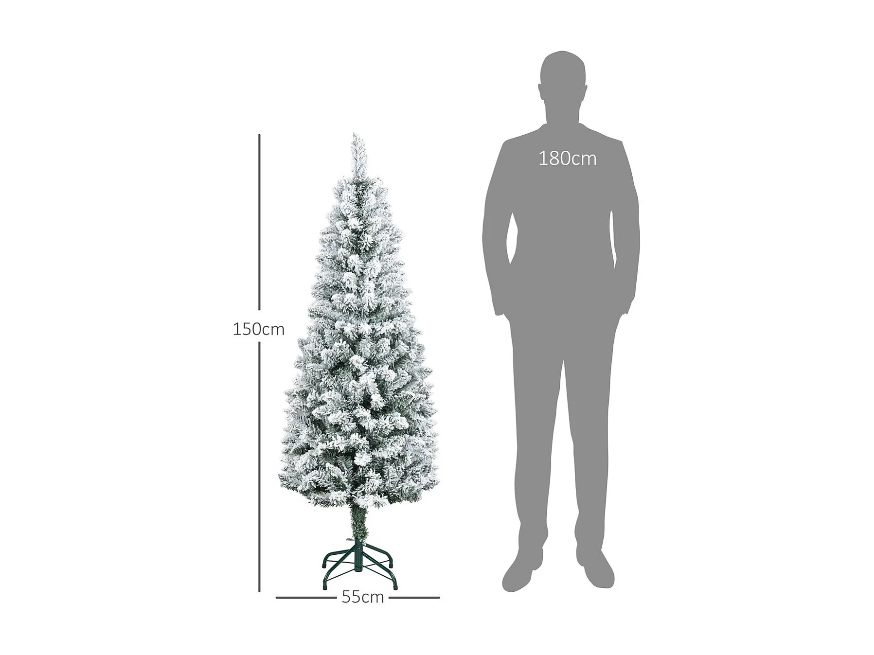 Árbol de Navidad Homcom 317 ramas efecto nevado verde Ø55x150 cm