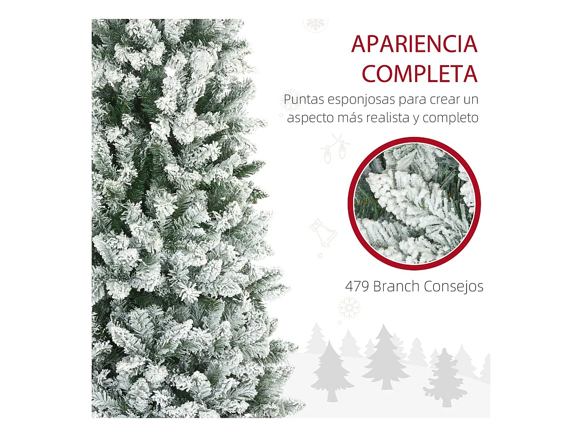 Árbol de Navidad Homcom 479 ramas con efecto nevado verde Ø65x180 cm