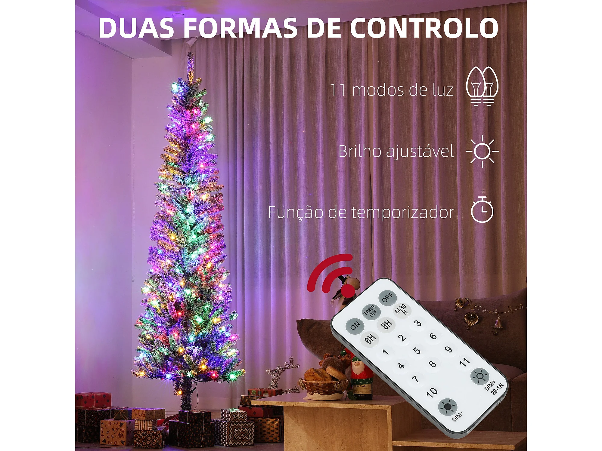 Árbol de Navidad Homcom 519 ramas con 220 LEDs 11 modos verde Ø68x225 cm