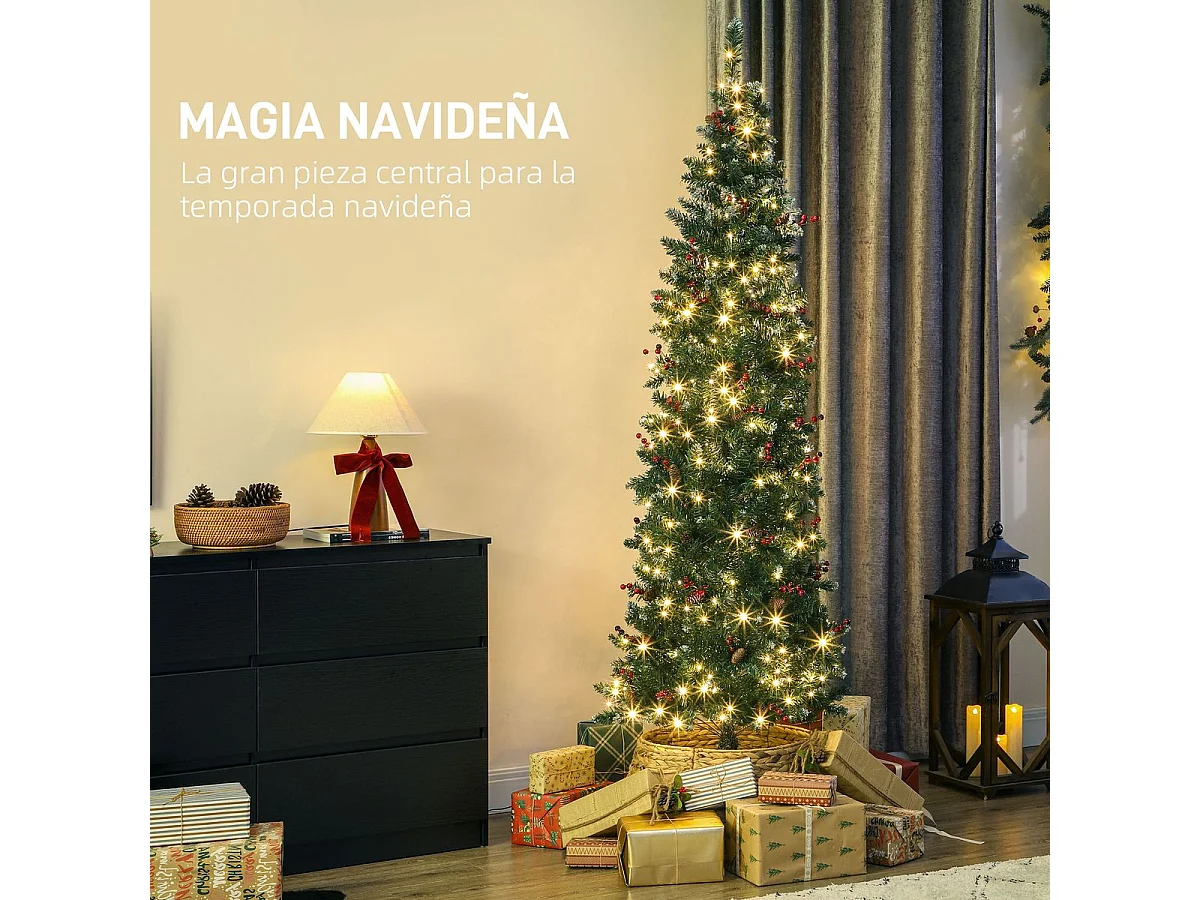 Árbol de Navidad Homcom 656 ramas con 300 luces LED y decoraciones verde 210 cm
