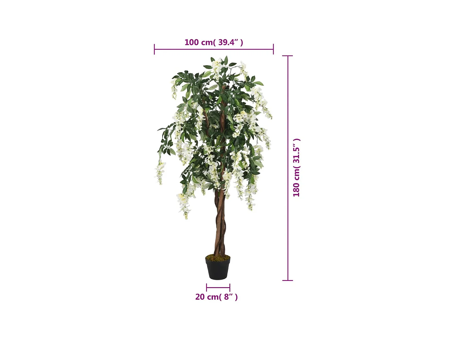 Árbol de wisteria artificial 1260 hojas verde y blanco 180 cm ES628608