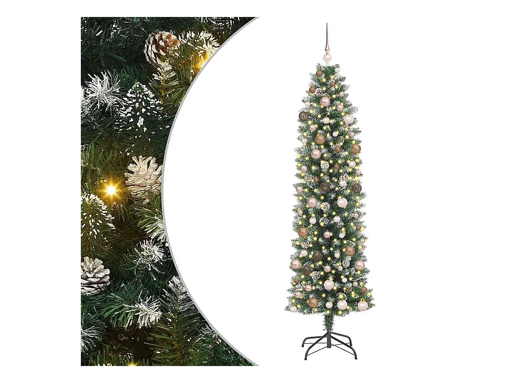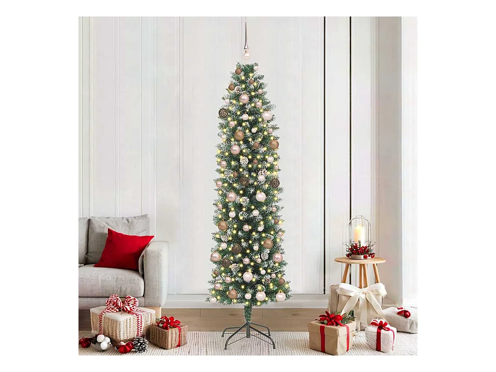 Árbol Navideño Artificial Delgado con 300 LED Verde 210 cm