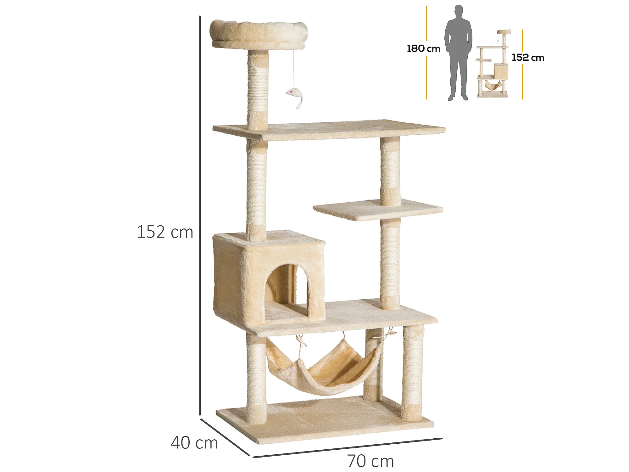Rascador para gatos marrón y crema 65x50x153 cm PawHut