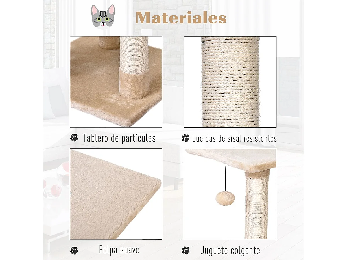 Árbol para gatos beige y gris 48x48x99,5 cm PawHut
