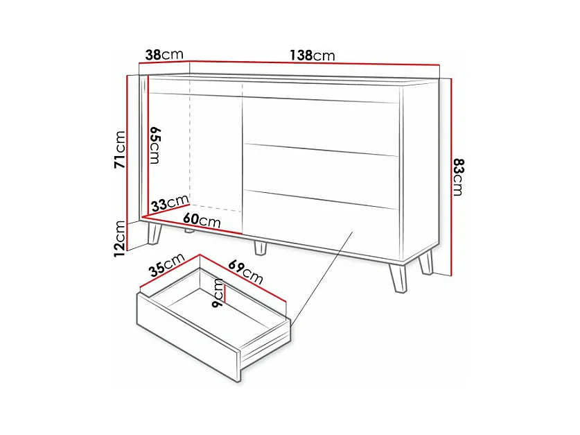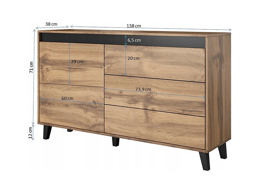 Arcón 1 puerta 3 cajones 138cm - Decoración roble Stik