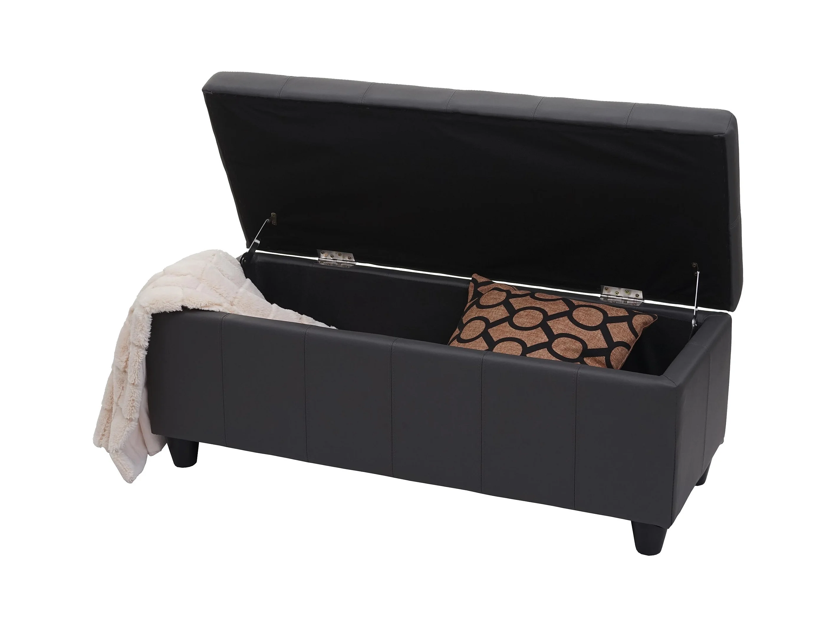 Banco tapizado con almacenaje,banco arcón de metal y madera de caucho 110x43x45cm