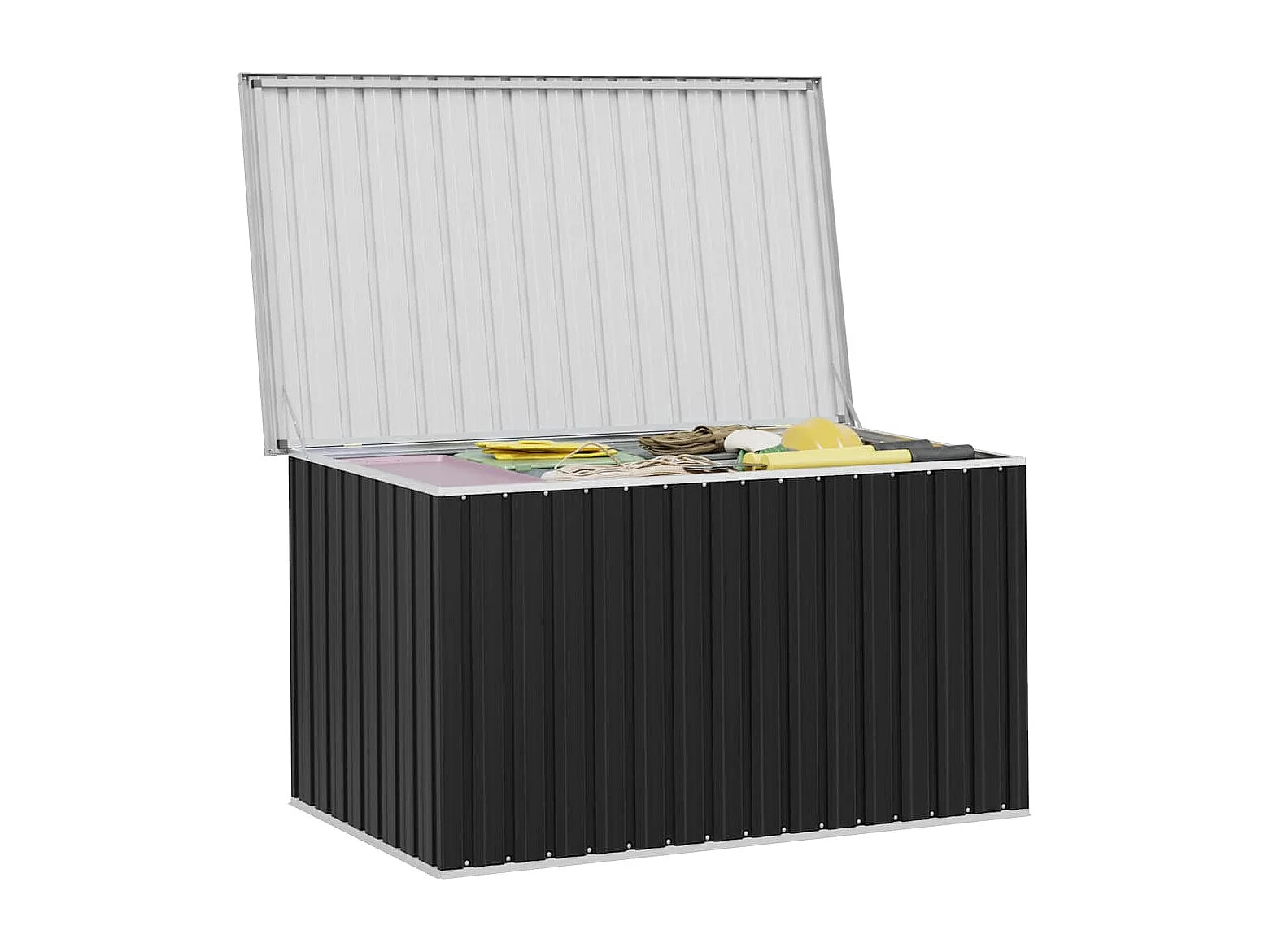 Caja de almacenamiento para jardín de ratán PP gris de 270 L