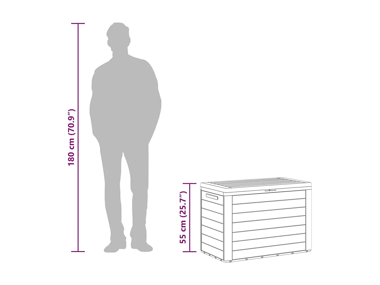 Caja de almacenamiento para jardín de ratán PP gris de 270 L