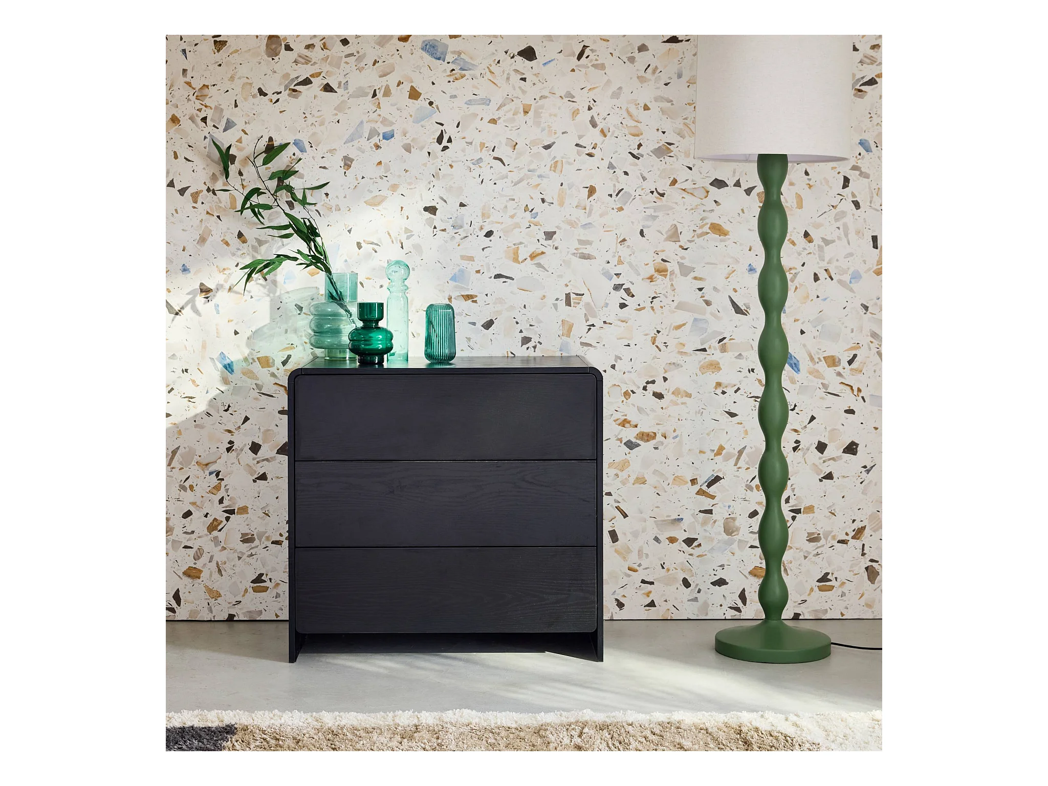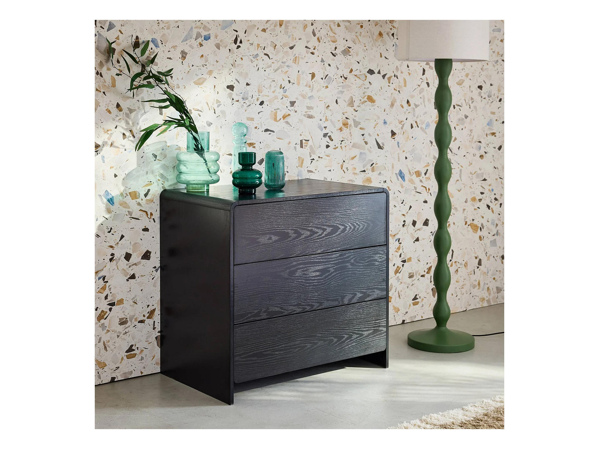 Cómoda con efecto madera y ranuras negras, 3 cajones negro