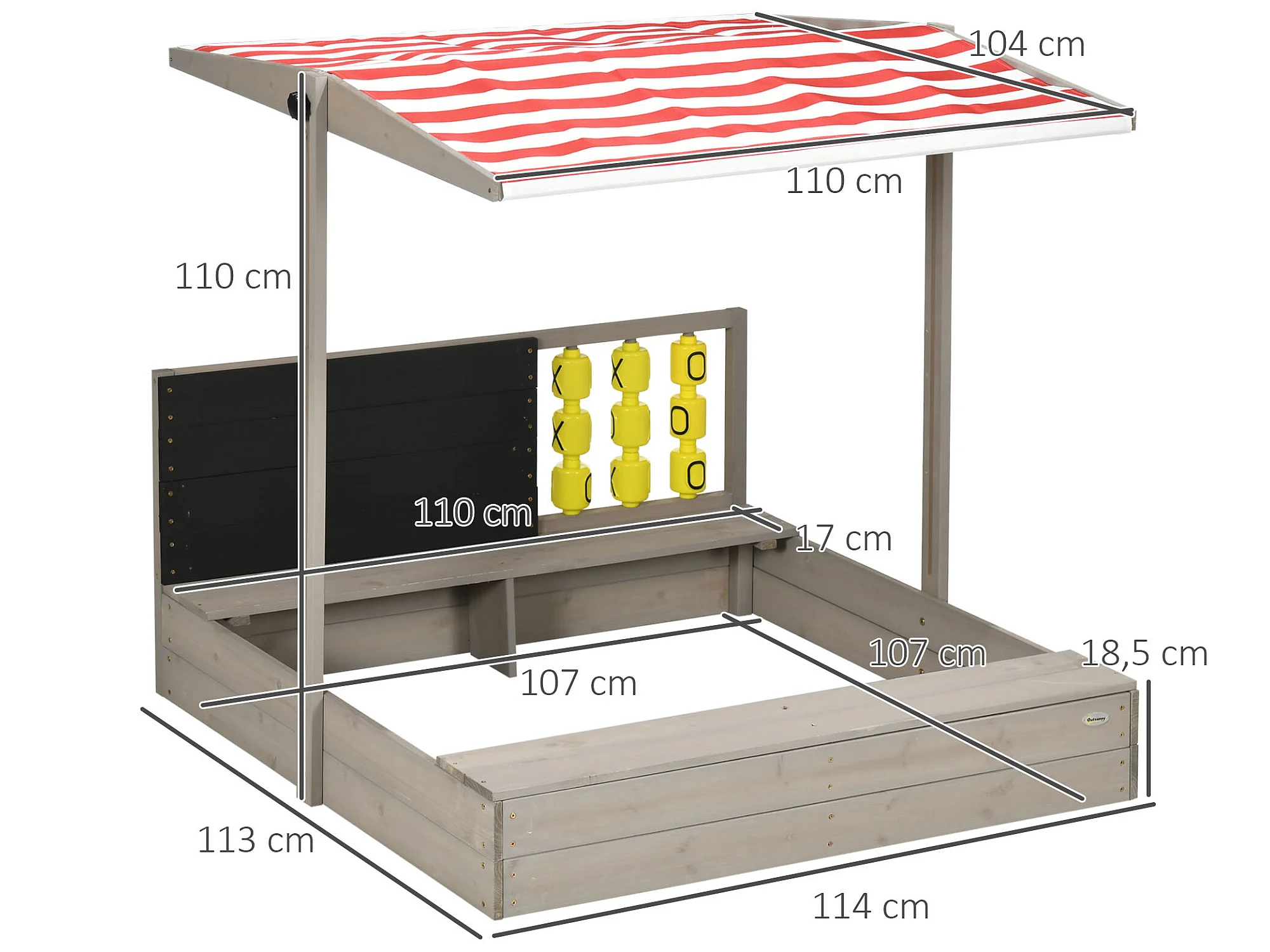 Arenero zona de juegos para niños jardín exterior con asientos cuadrados madera maciza de pino gris 02_0041521