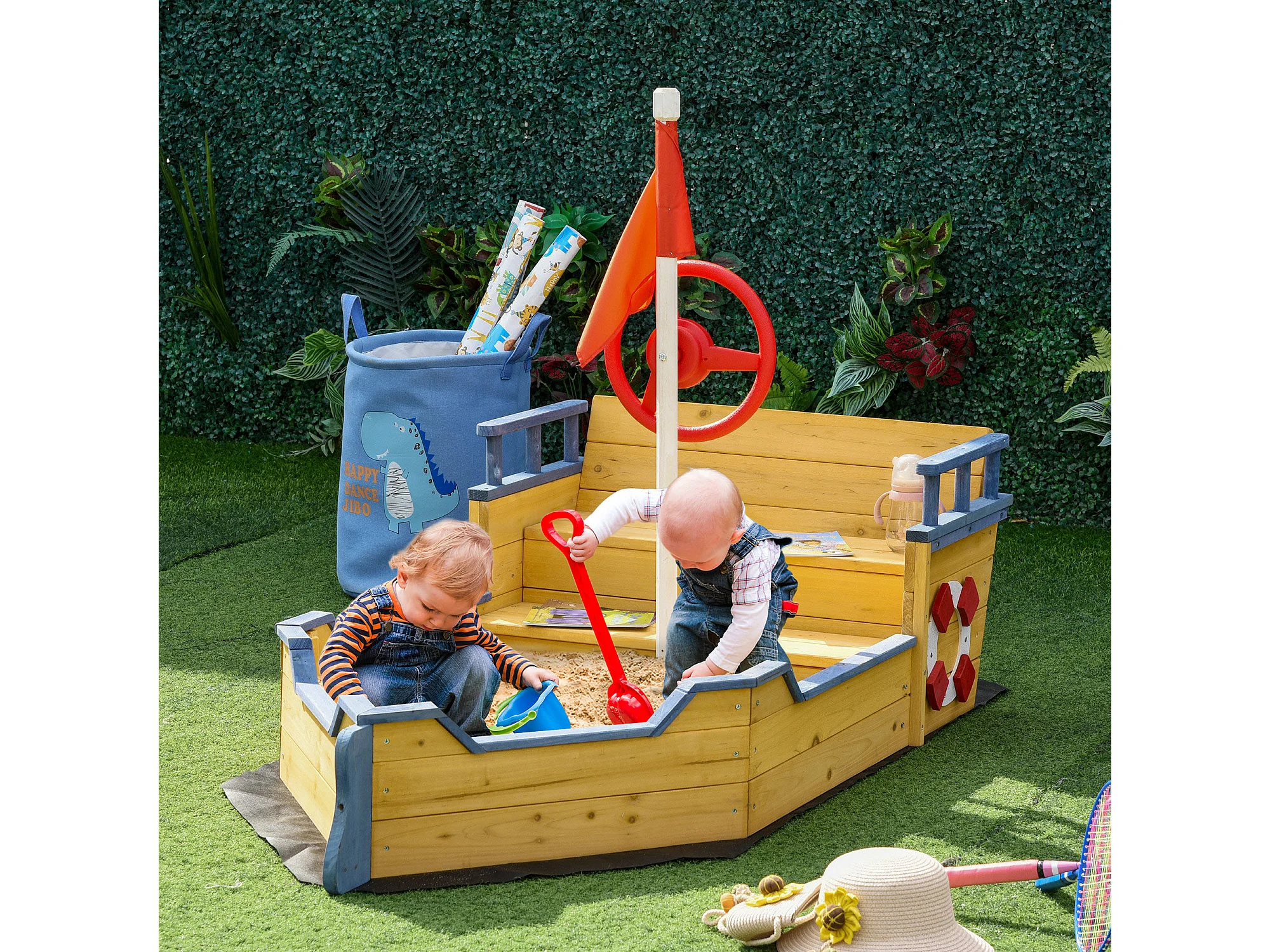 Arenero infantil de madera madera natural 158x78x45.5 cm Outsunny