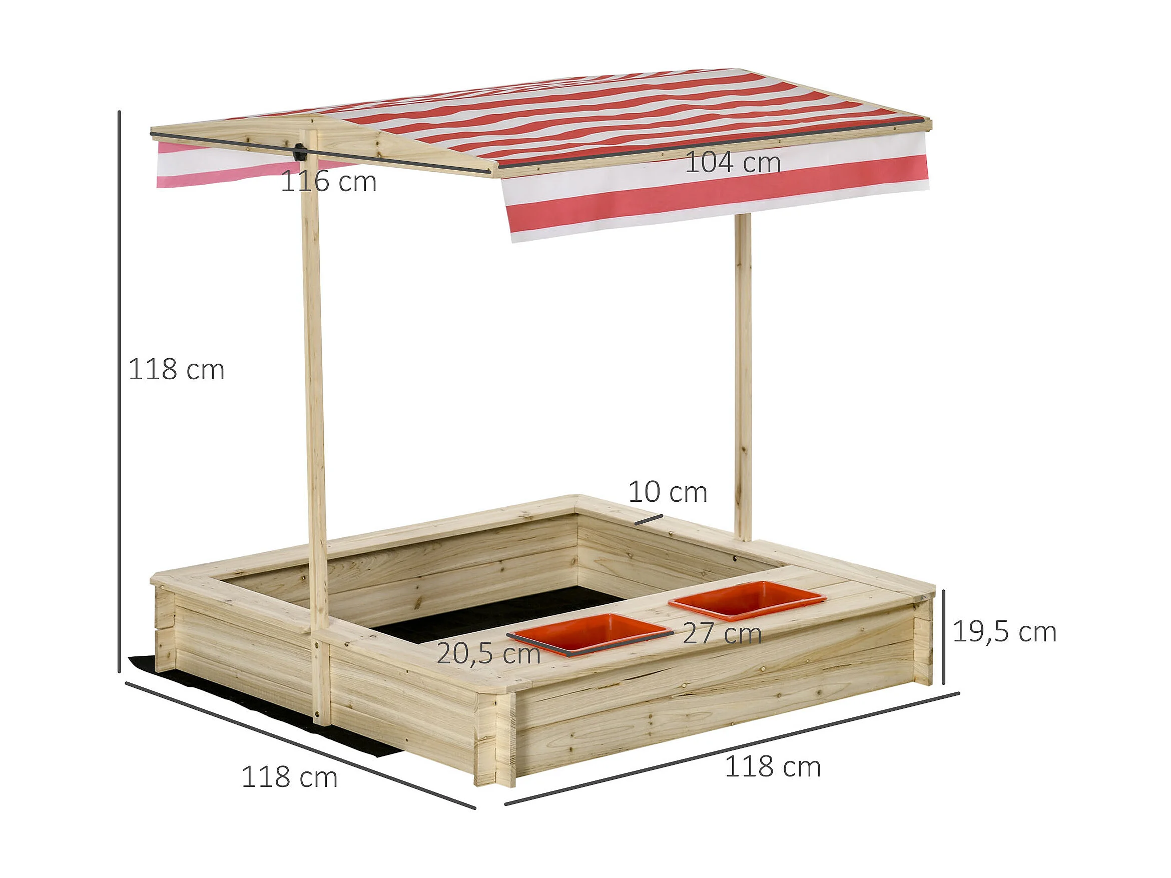 Arenero para niños madera natural 118x118x118 cm Outsunny