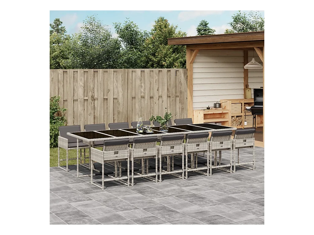 Ilo Set comedor jardín y cojines 13 pzas ratán sintético gris claro