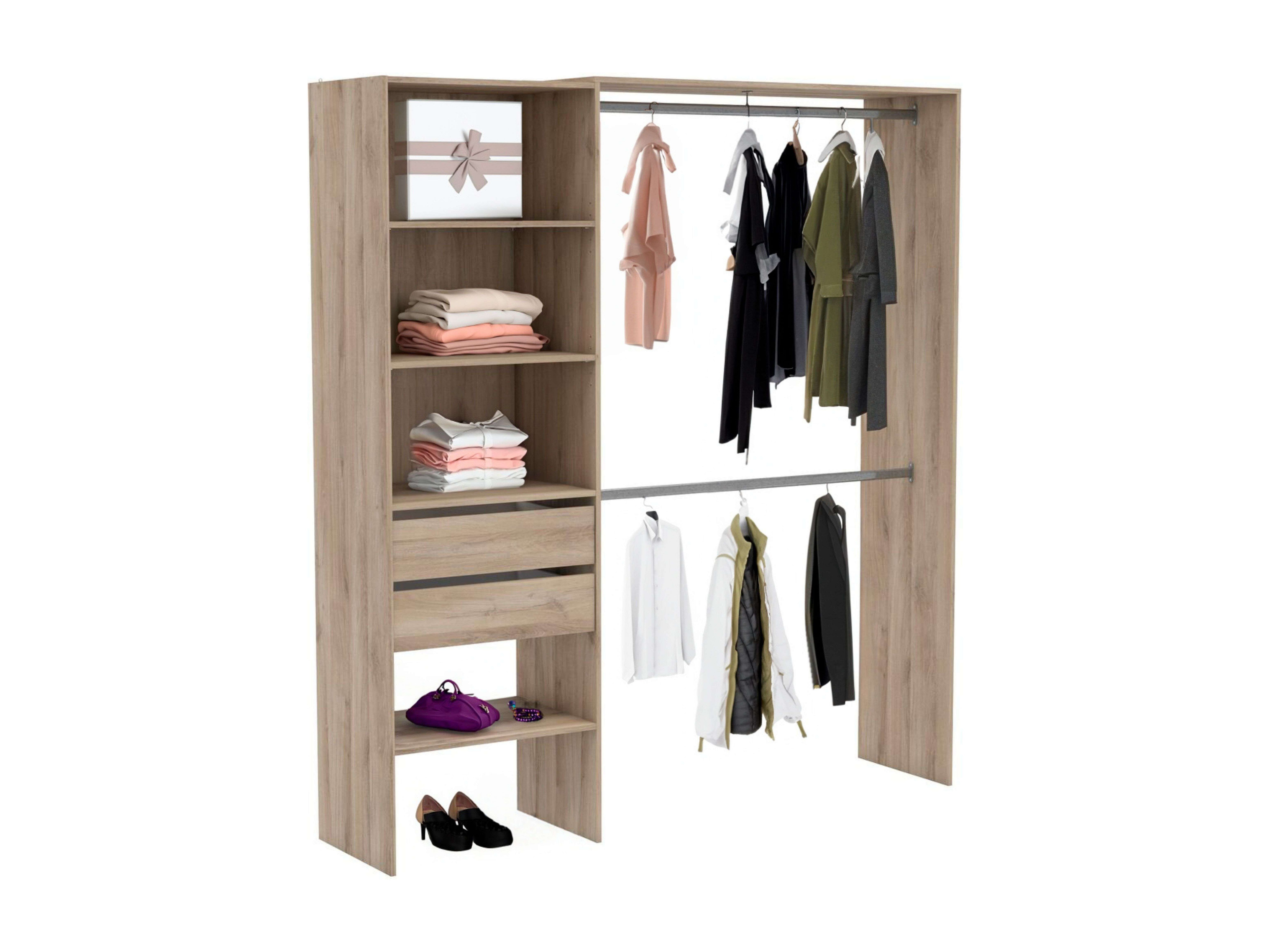 Vestidor Abierto Diego 2 Cajones 8 Estantes 2 Barras Roble 182 cm