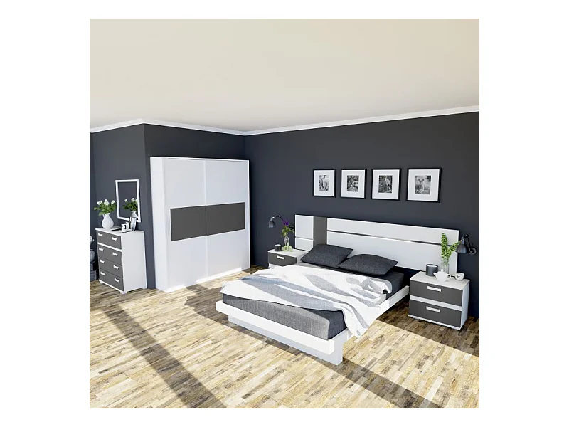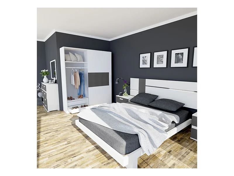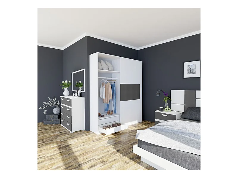 Armario 2 puertas correderas Uniq 180 Blanco - Grafito