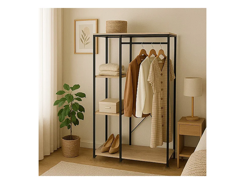 Armario Abierto Estilo Industrial con Barra y Baldas - 167x90x41cm - Buyqualia