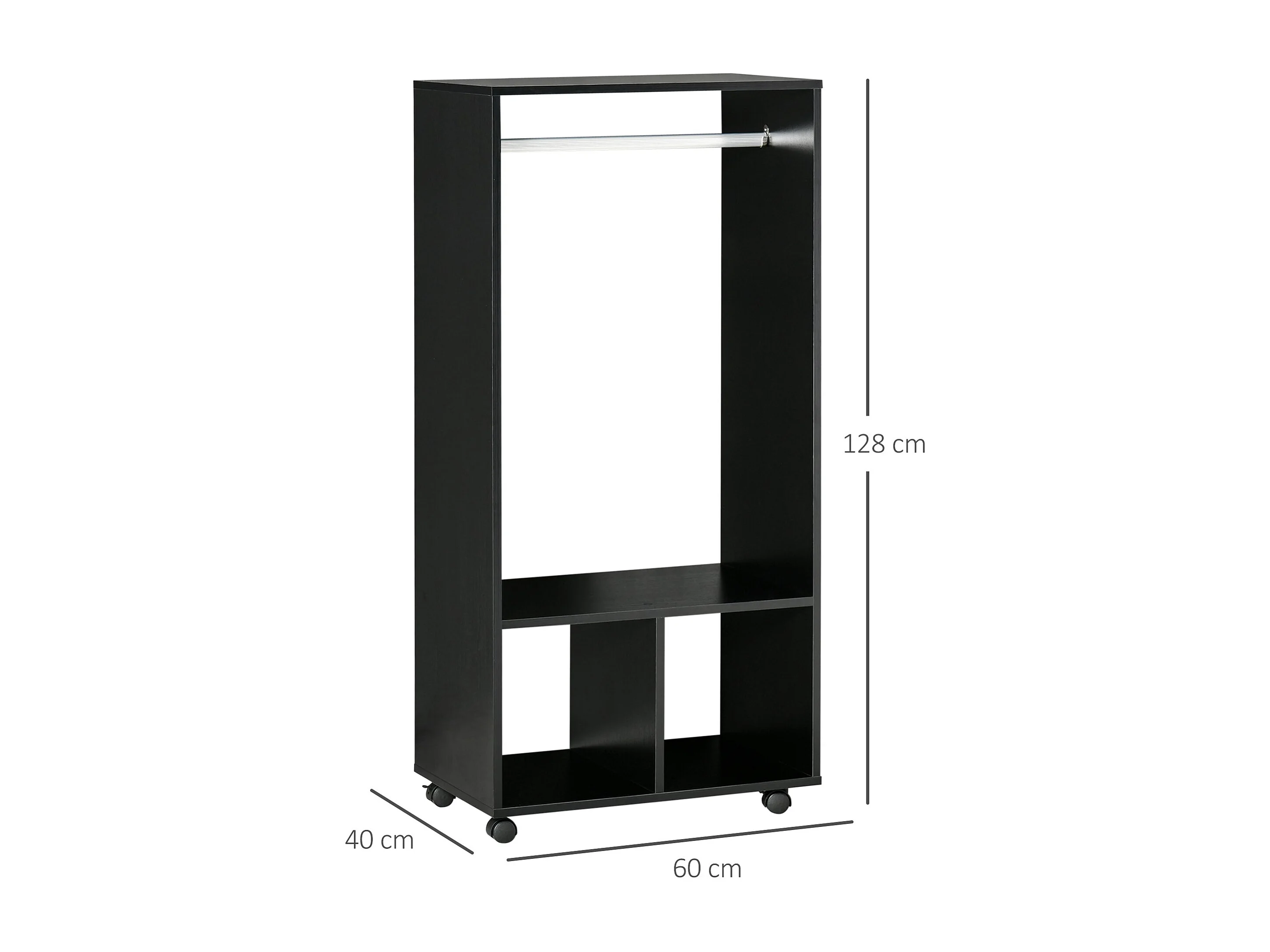 Armario abierto Zayn Homcom 1 barra + 3 estantes + ruedas negro 128x80x40 cm