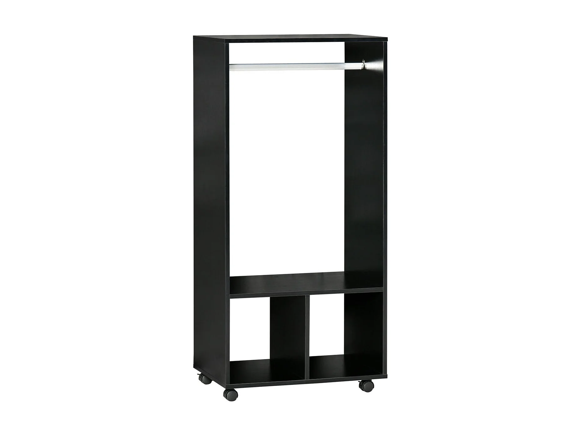 Armario abierto Kirk Homcom 1 barra + 2 estantes + ruedas negro 128x60x40 cm