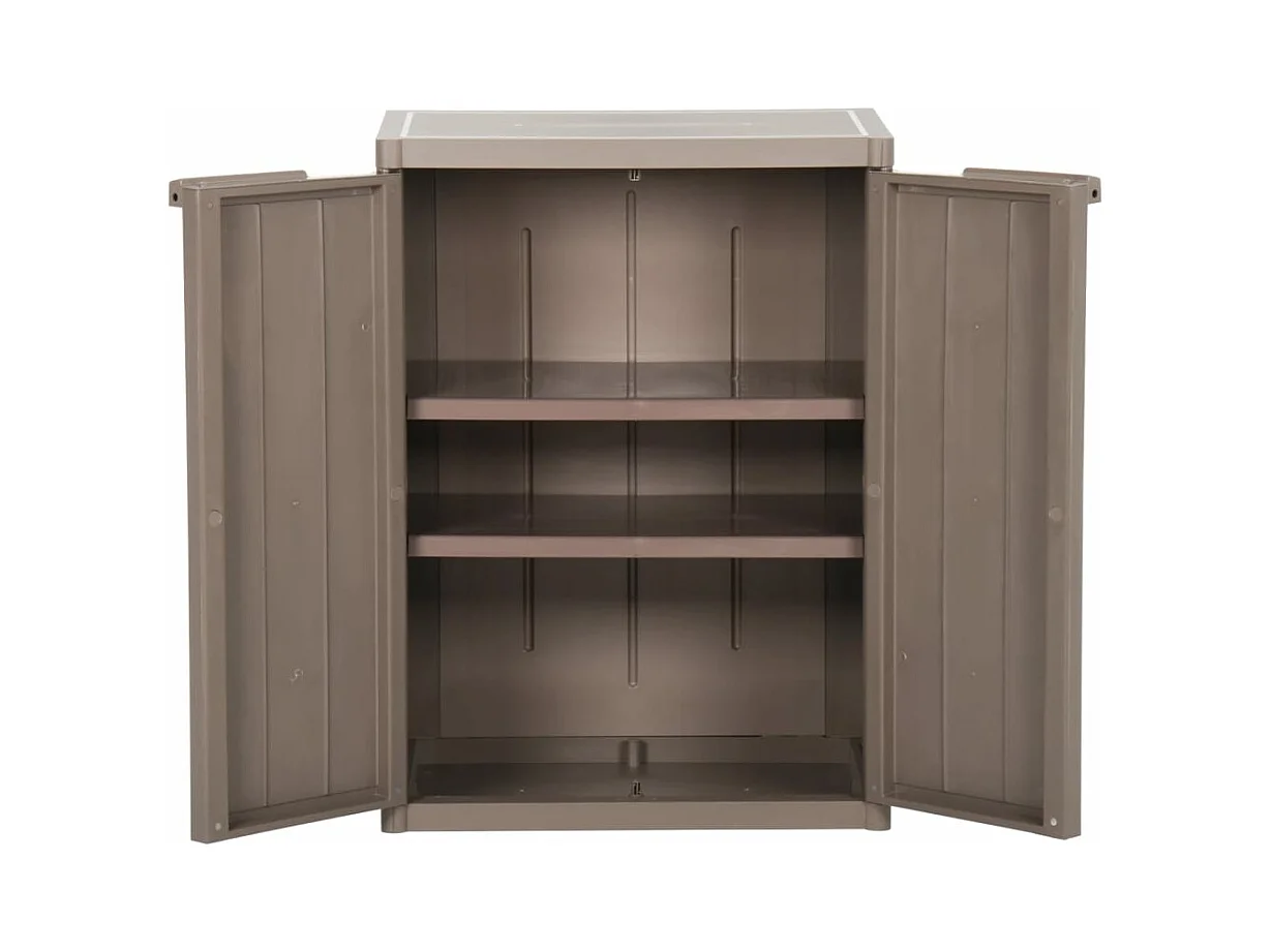 Armario almacenaje de jardín PP apariencia madera 65x45x88 cm