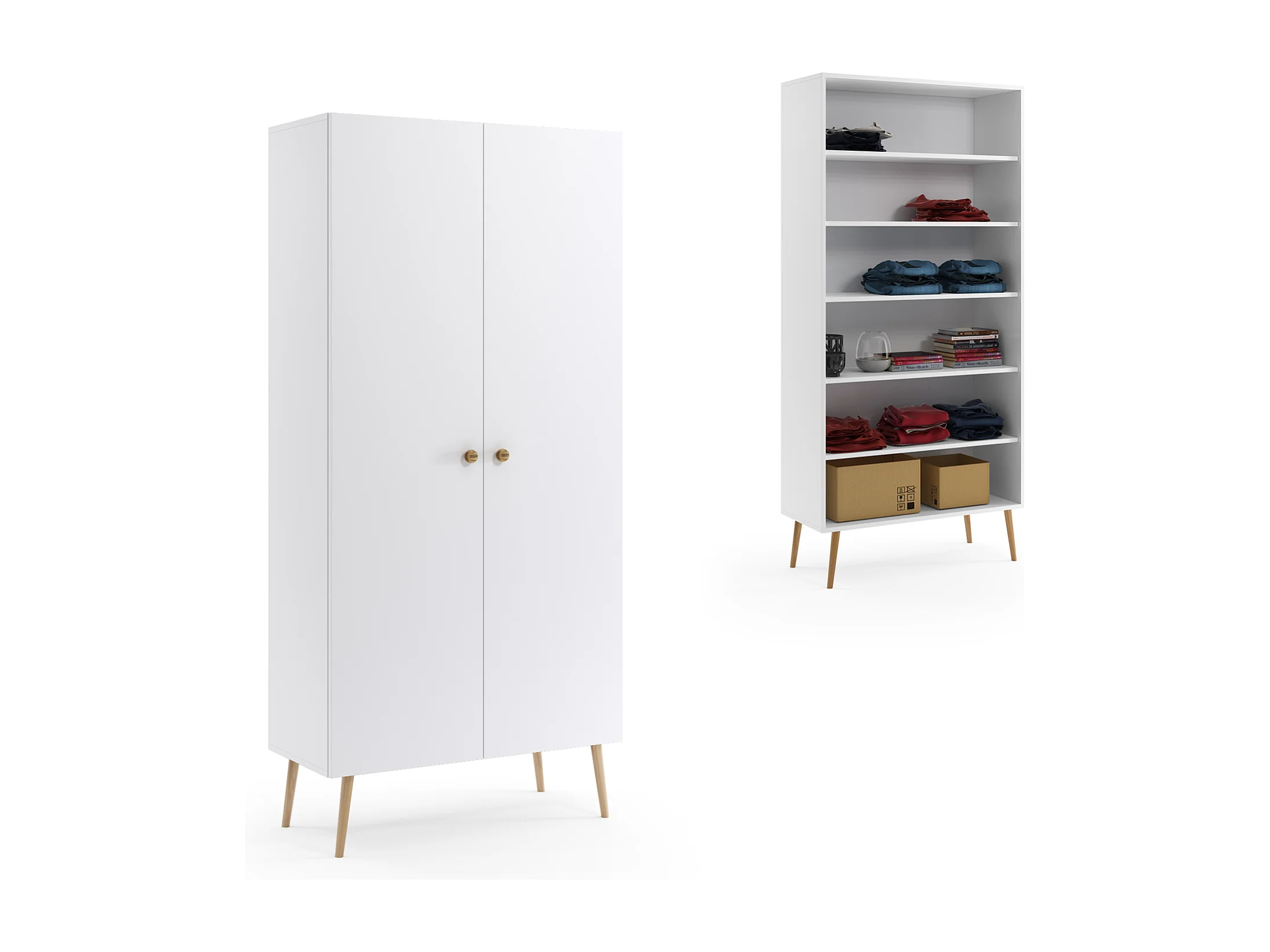 Armario Blanco Estilo Escandinavo – 2 Estantes y Barra – Disponible para Salón o Dormitorio 202x100x52 cm